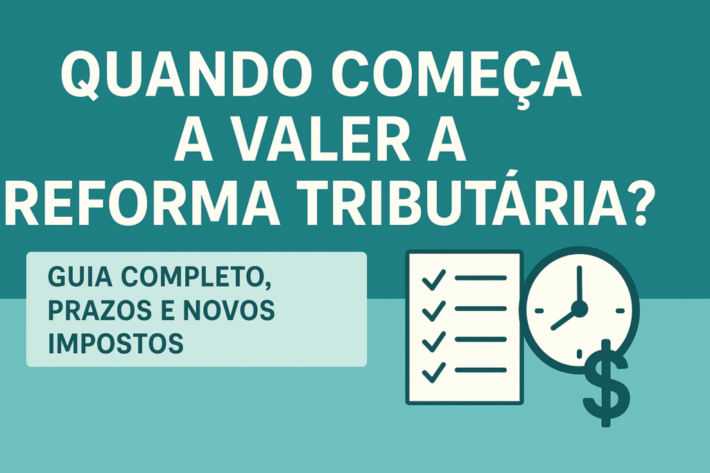 Quando começa a valer a Reforma Tributária? Prazos, novos impostos, impactos por setor e como se preparar Reforma Tributária • Guia atualizado Quando começa a valer a Reforma Tributária? Cronograma, novos impostos e impactos por setor Este artigo responde às buscas mais feitas no Google — “quando começa a valer a reforma tributária”, “reforma tributária […]